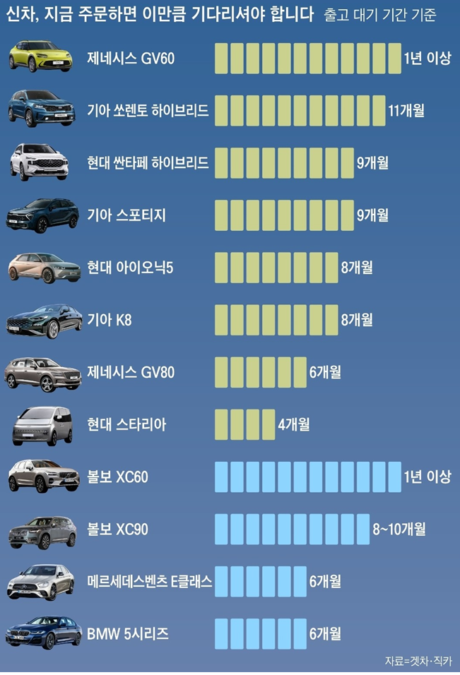 인기차종 출고 대기 기간