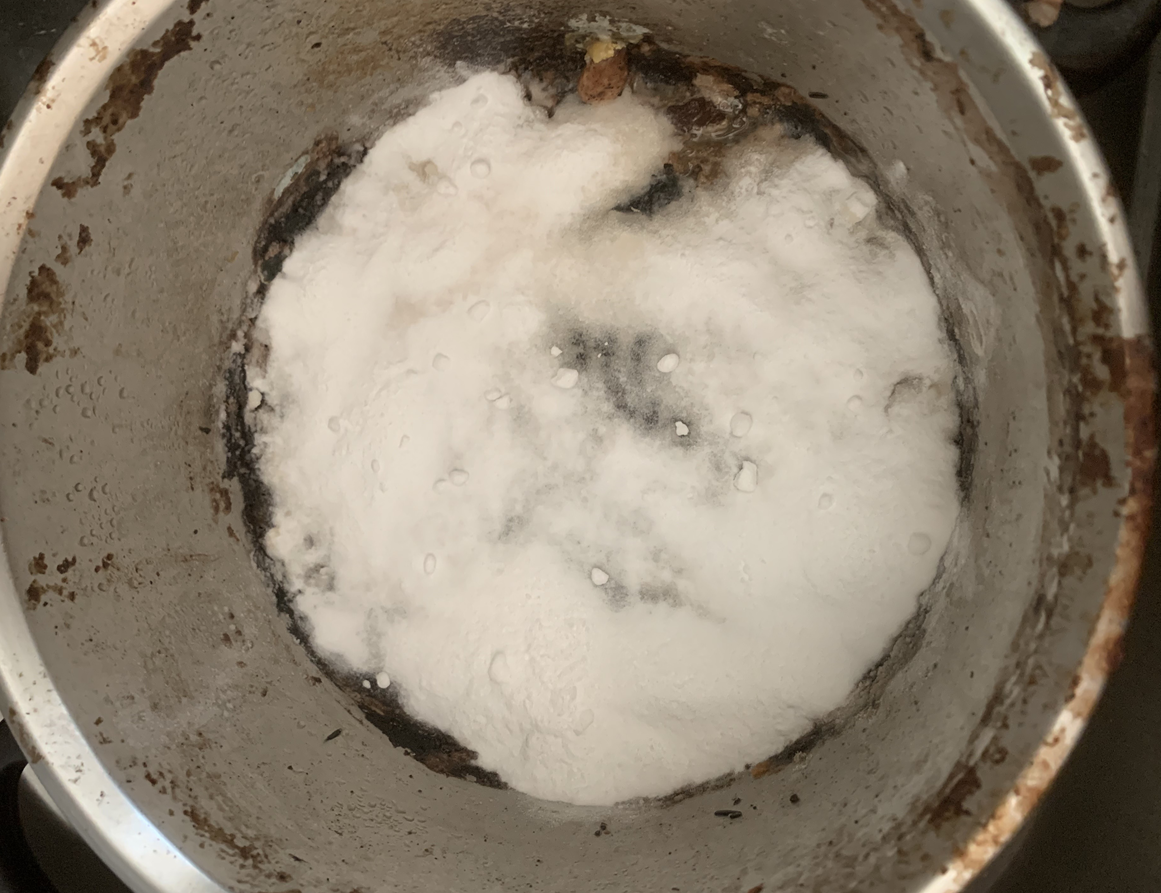 깔끔하게 탄 냄비 세척이 마무리 되었습니다.