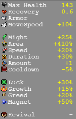 | 뱀파이어 서바이버즈(Vampire Survivors) 아이템 / 장신구 조합법! (1) | 2022.01.27 |