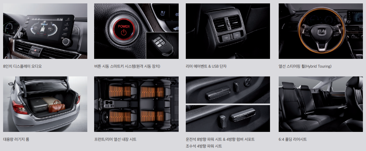 혼다(Honda) 어코드(Accord) 10세대 F/L 하이브리드 투어링. 제원, 옵션, 연비, 가격 정리.