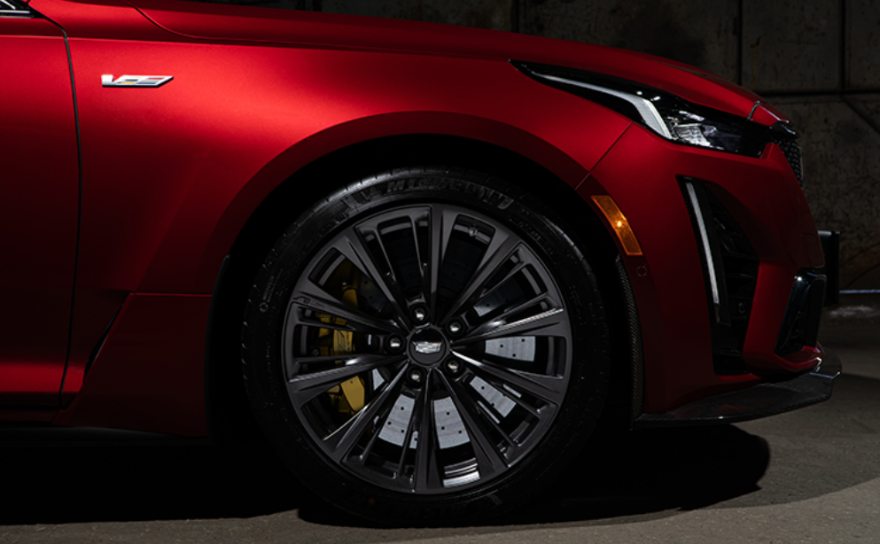 캐딜락 최초의 카본 세라믹 브레이크를 장착했으며, 눈에 띄는 고성능 브레이크 시스템을 갖췄습니다. 이 브레이크 시스템은 차량 운전 모드(투어, 스포츠, 트랙 및 눈/빙판)와 통합되어 각 모드에 맞춰 브레이크 페달 답력을 조정합니다.