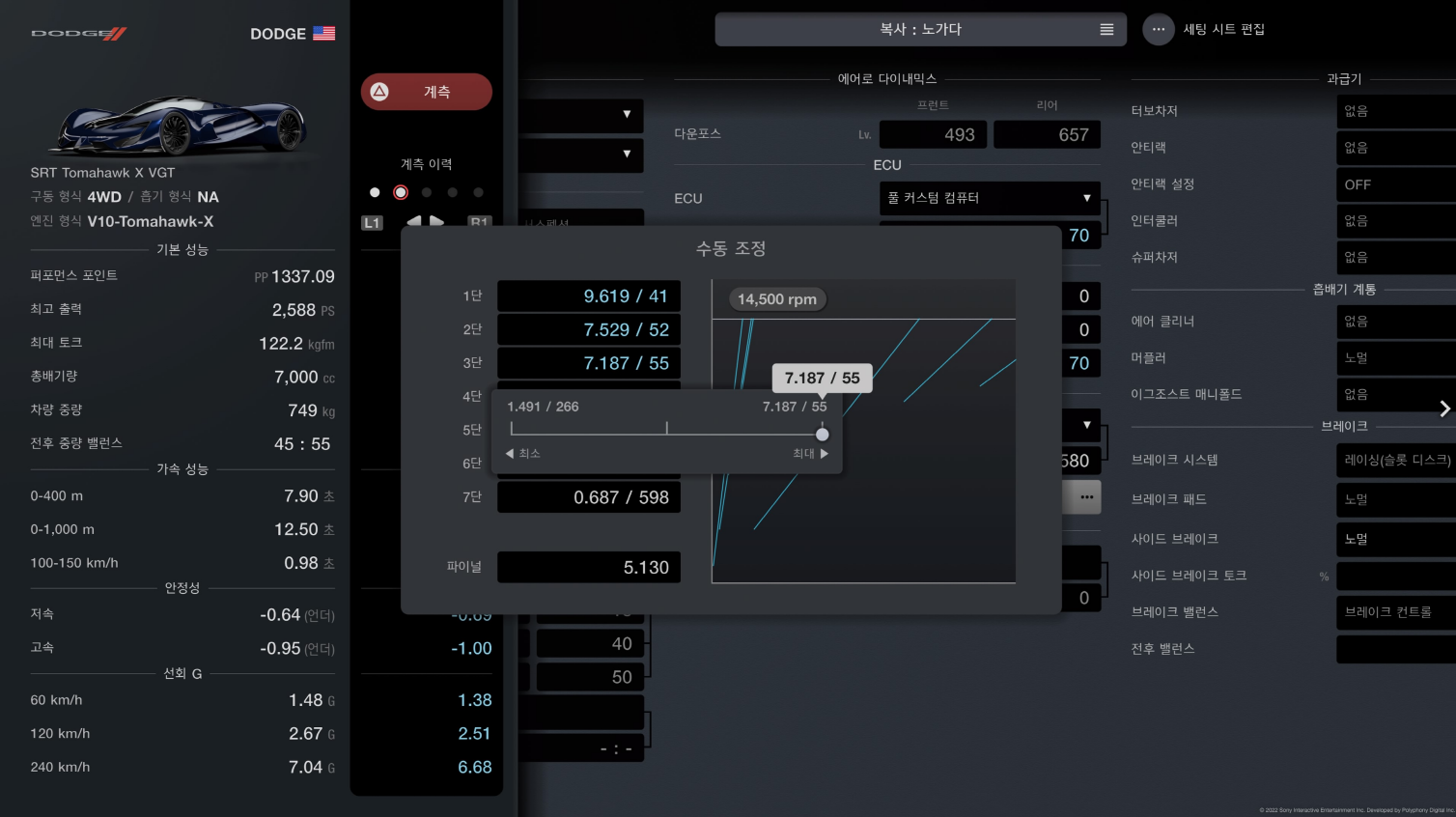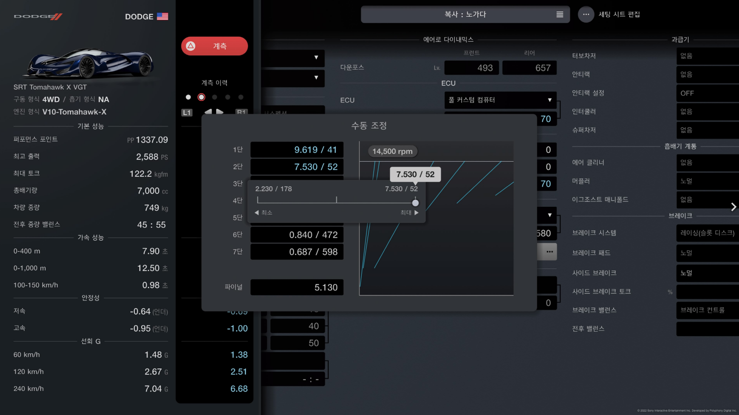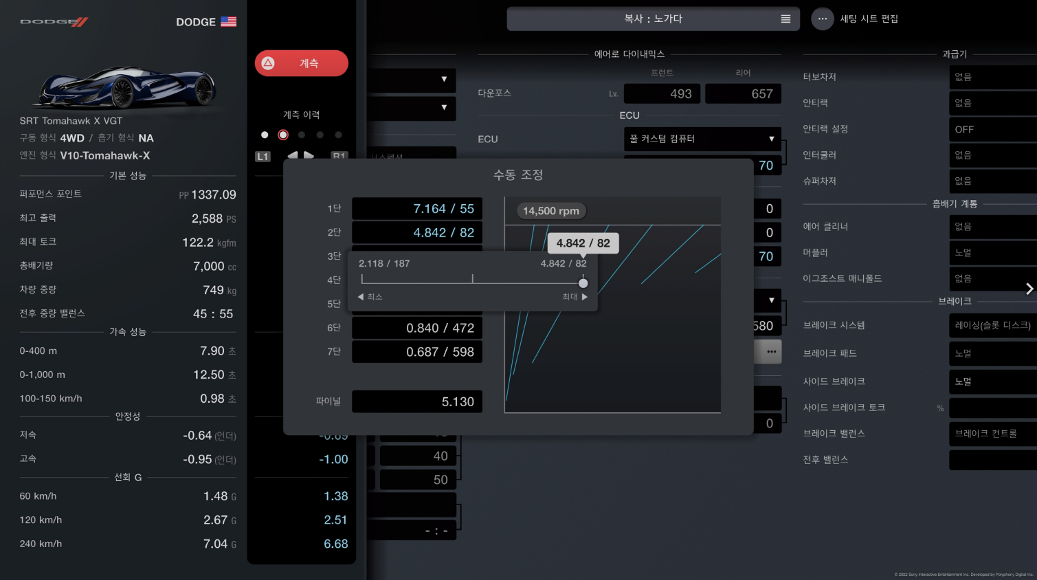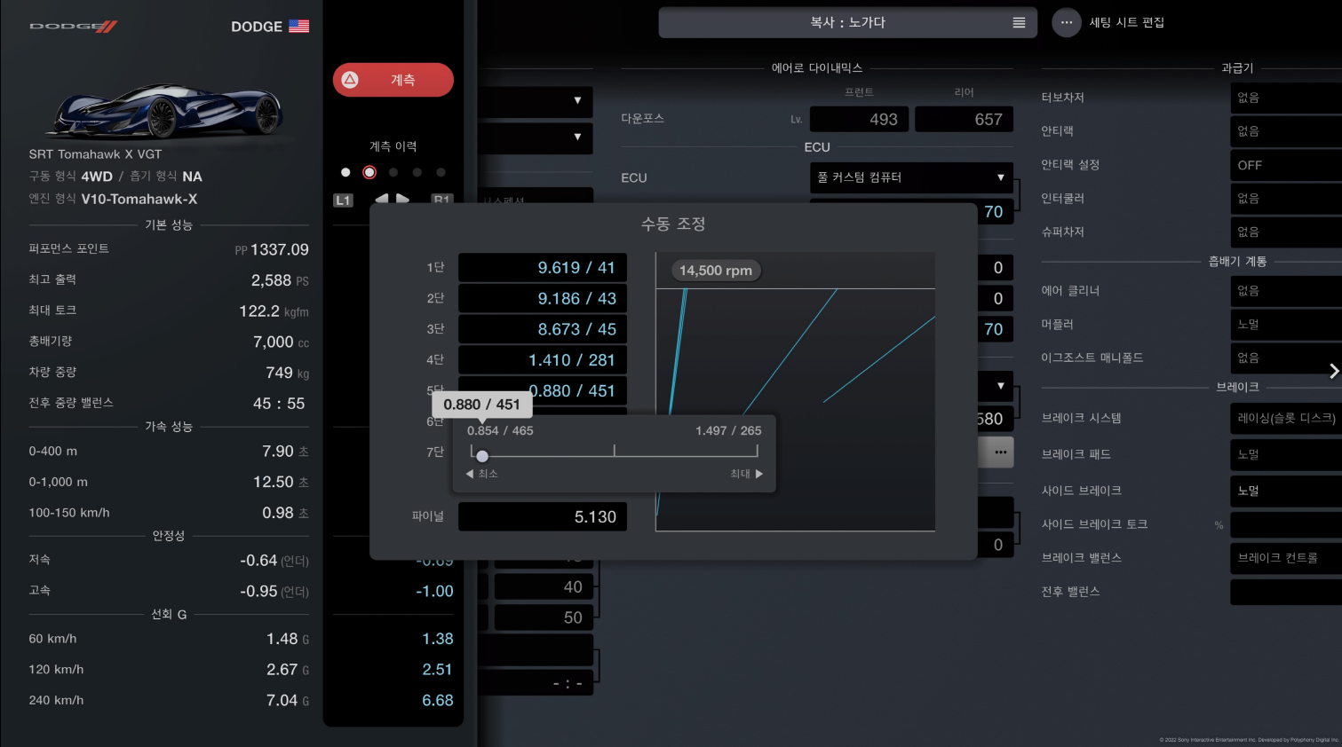 그란투리스모7 1.13 패치 후 돌아온 토마호크 X VGT 크레딧 노가다! 설정방법과 공략. (1시간에 약 250만 크레딧)