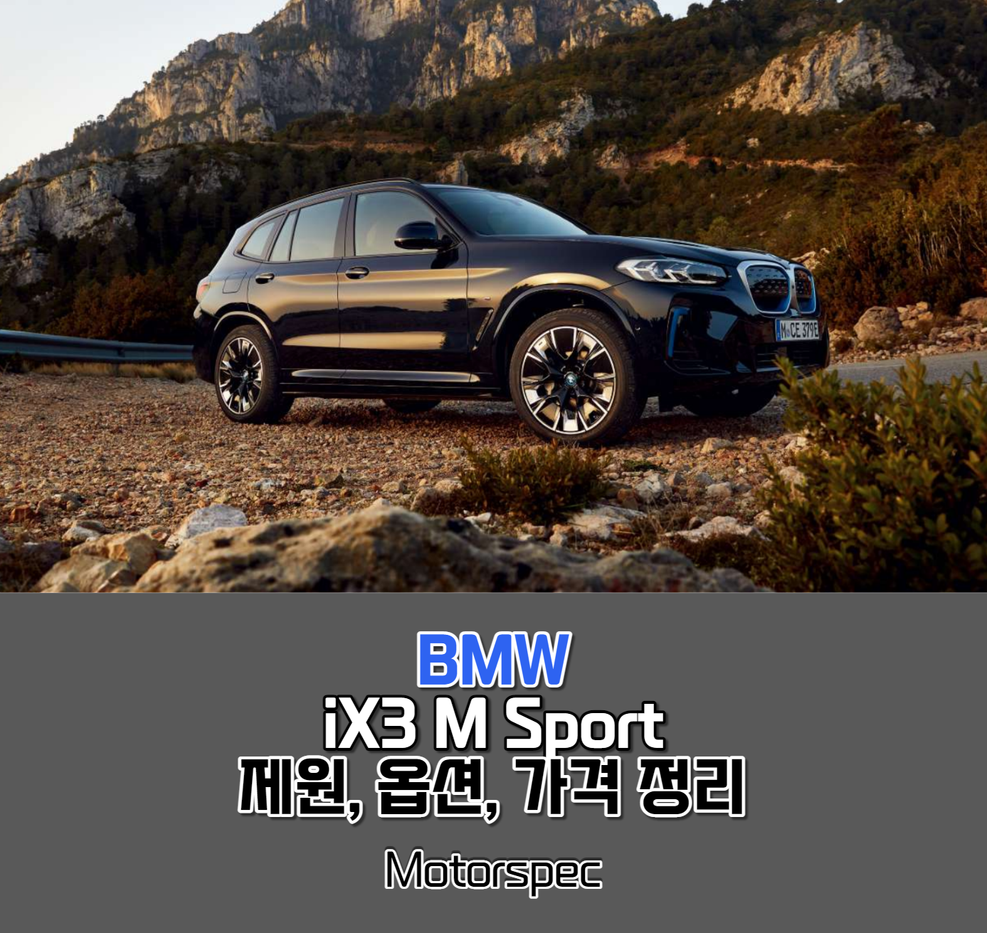 BMW의 iX3는 BMW 전기차 브랜드 'i'시리즈의 3번째 모델로써 내연기관 X3를 기반으로 만든 순수 전기 SUV입니다. iX3는 2020년 7월 전기형이 최초로 공개되었고 우리나라에는 2021년 11월부터 2022년 후기형이 수입되고 있습니다. 약 286마력의 부담없는 출력과 1회 충전으로 344km를 달릴 수 있어 패밀리카로 매우 좋은 전기차로 평가되고 있습니다. 또한 150kW의 고속충전소에서 배터리를 충전할 수 있는 제어장치가 탑재되어 충전 시작후 34분만에 약 80%까지 충전이 가능하여 전기차를 타면서 느끼는 충전의 불편함도 어느정도 해소가 되었습니다. BMW iX3 M Sport 모델의 제원, 옵션, 가격등을 살펴보겠습니다.