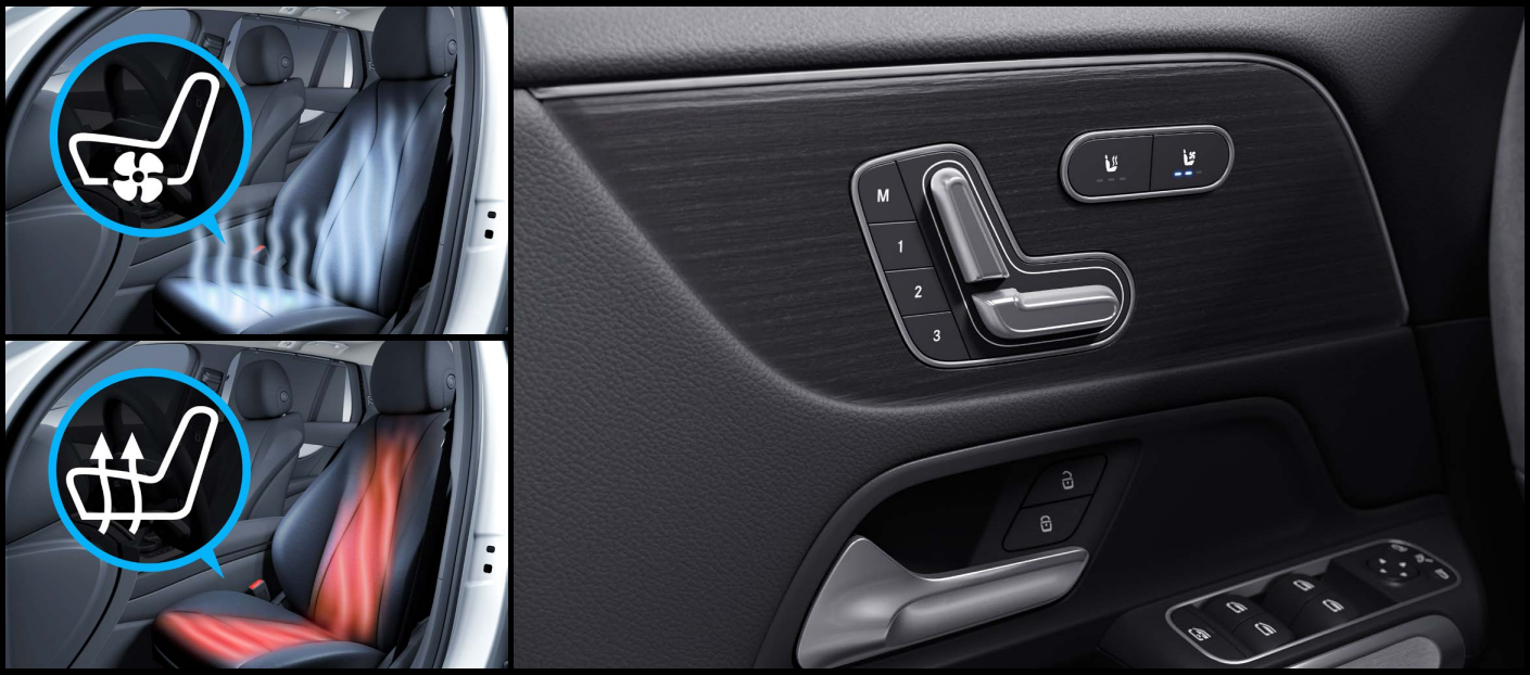 통풍 기능을 통해 앞좌석의 온도와 습도를 쾌적한 상태로 유지할 수 있으며, 열선 시트는 서늘한 날씨에 좌석 쿠션과 등받이 온도를 따듯하게 합니다. 열선 시트와 통풍 시트는 별도로 사용할 수도, 함께 사용할 수도 있으며, 좌석의 환기 강도도 세가지 레벨로 다양하게 선택할 수 있습니다.