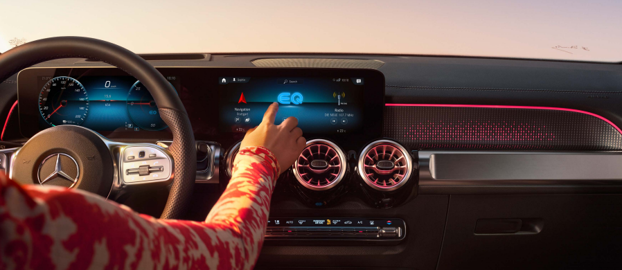 자연스러운 대화로 직관적인 음성 명령이 가능한 MBUX. 필요 전력 상황은 0%부터 100%까지 보이며 하단 가장자리에 에너지 상황이 표시됩니다. 배터리 충전량이 너무 낮거나 외부 온도가 매우 낮은 경우 시스템에서 출력 제한을 표시합니다. 운전자가 출력계 대신 다른 디스플레이 메뉴를 선택할 경우, 파워트레인 출력에 대한 정보가 왼쪽 영역에 표시됩니다.