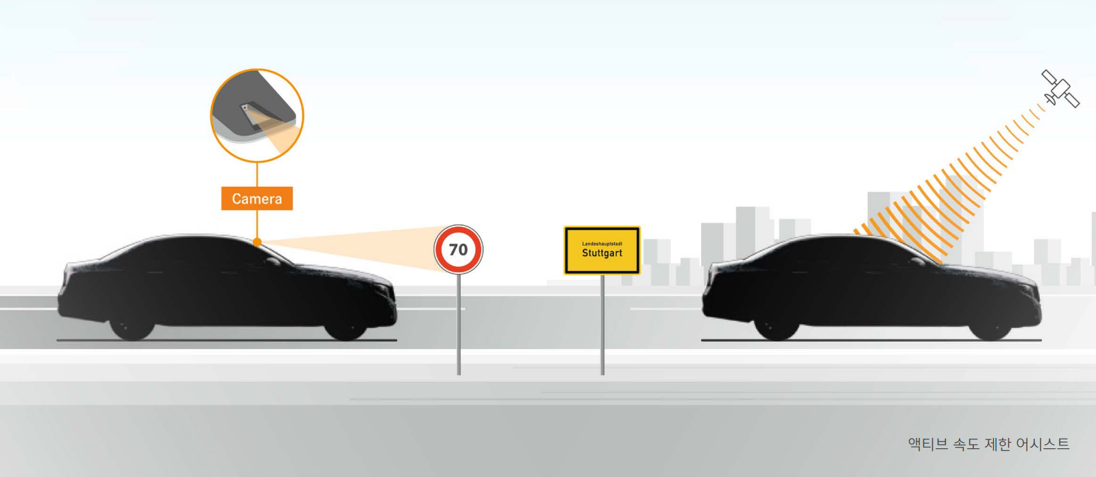 MBUX 증강 현실 내비게이션은 그래픽 내비게이션과 실시간 교통 정보가 통합되어 빠르고 안전하게, 스트레스 없이 목적지에 도달할 수 있도록 도와줍니다.