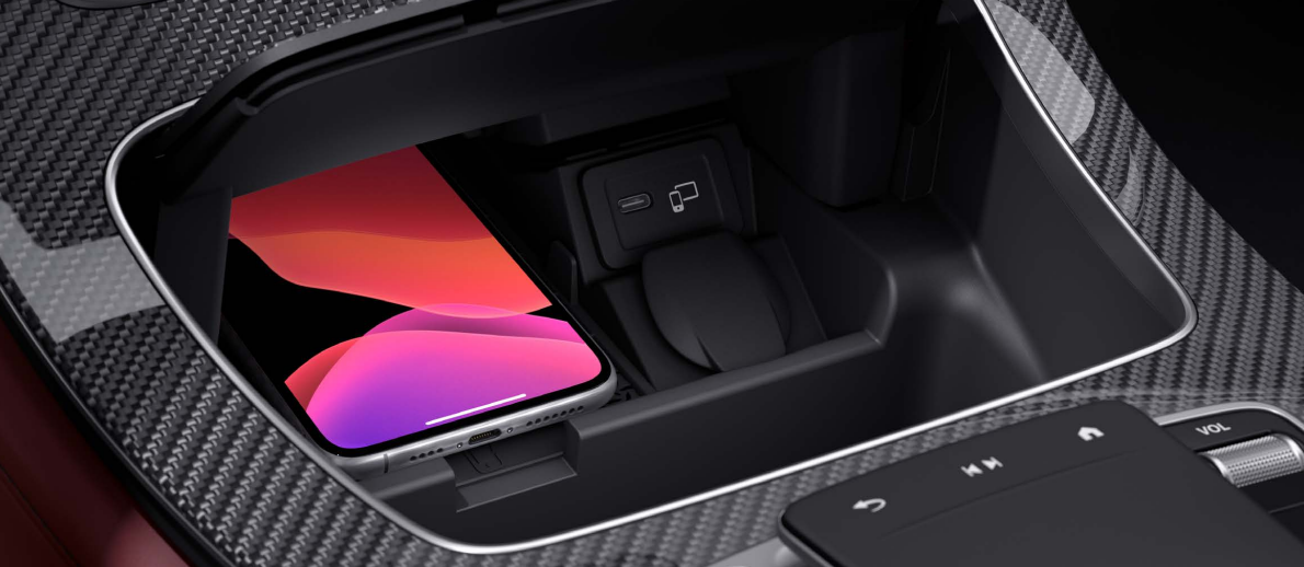Qi 표준을 충족하는 스마트폰이라면 스마트폰을 센터 콘솔의 전면 보관함에 있는 충전 공간에 높는 것만으로도 무선충전이 가능합니다.