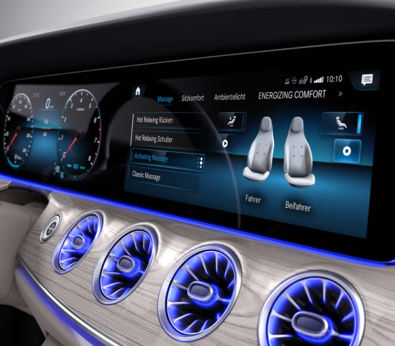 더욱 안전하고 편안한 주행이 될 수 있도록 차량 내부 및 외부에서 수집된 다양한 데이터와 운전자의 컨디션을 분석하여 운전자에게 최상의 환경을 제공합니다. 에너자이징 패키지를 통해 장거리 주행에서 오는 신체적 또는 정신적 피로감을 감소시킬 수 있으며, 운전자의 컨디션에 맞는 프로그램을 선택할 수 있습니다. 각각의 프로그램은 실내 온도와 앰비언트 라이트, 음악 등을 조절하며, 마사지 기능 및 통품, 히팅과 같은 좌석의 기능도 조절합니다. MBUX 멀티미디어 시스템을 통해 음성으로 간편하게 원하는 프로그램을 선택하고 활성화할 수 있습니다.