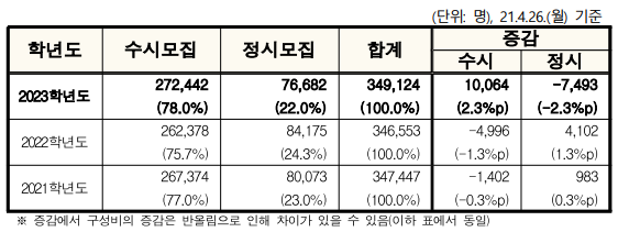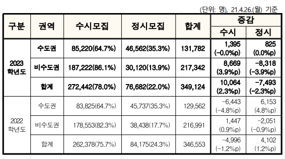 - 2022학년도 346,553명 → 2023학년도 349,124명(+2,571명)