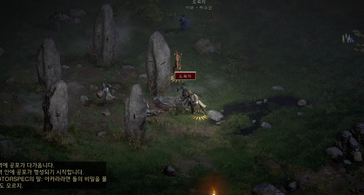 바위 벌판을 진행하다 보면 이런 비석 5개를 마주치게 됩니다. 케인을 구하기 위해 좀 이따가 사용할 비석이며 이 비석 주변에는 라카니슈라는 유니크 몬스터가 경험치를 잘 주니 있으니 잡아줍시다. 또한 맵을 돌아다니면서 바위벌판의 웨이포인트를 찾아 꼭 찍어주도록 합시다.
