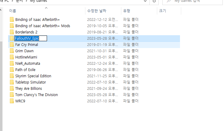 FalloutNV_Epic 폴더명을