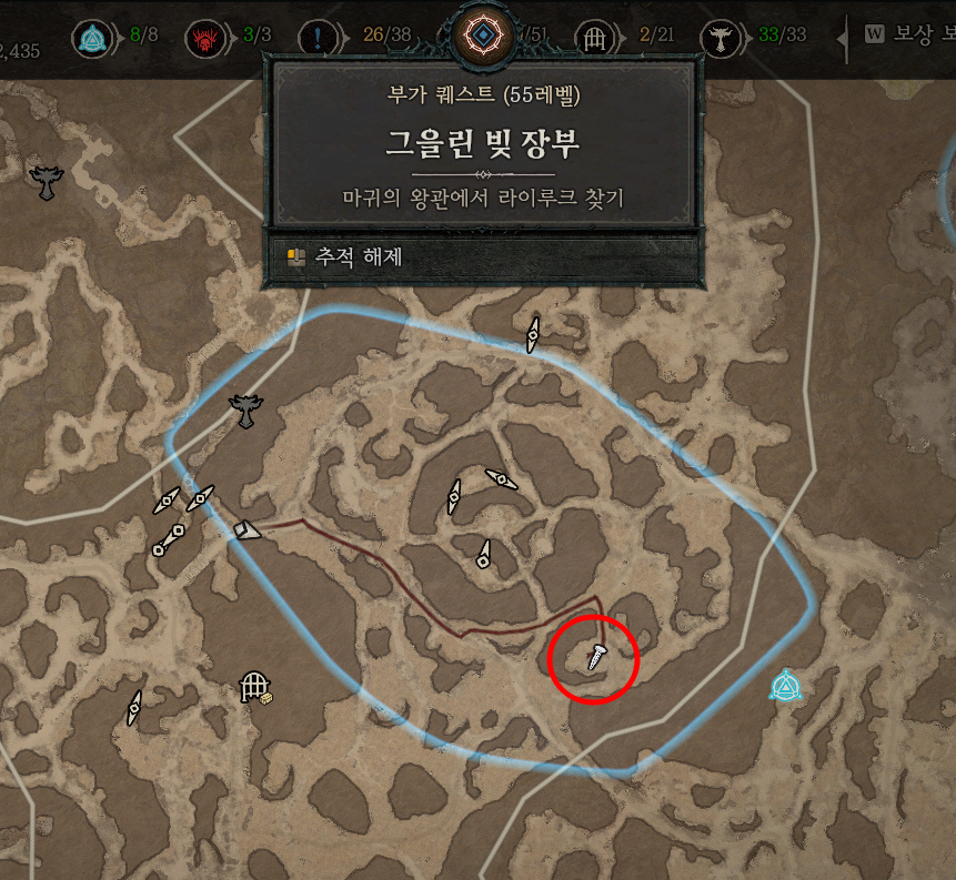 메마른 평원의 서브 퀘스트를 진행 중 그을린 빚 장부라는 퀘스트가 나타납니다. 이 퀘스트는 마귀의 왕관 지역에서 라이루크를 찾아야 추가 진행이 가능하지만 라이루크가 어디있는지 몰라 진행이 더뎌지는 경우가 있습니다. 빠른진행을 위해 라이루크의 위치를 알려드리겠습니다.